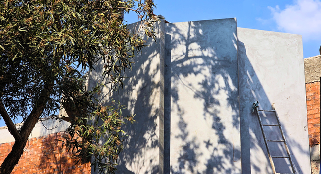 House Waterfall – Precast Fins (Outdoor Pavilion Bathroom)